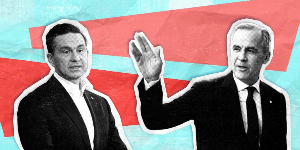 Liberal Leader Mark Carney, left, and Conservative Leader Pierre Poilievre. Thanks to the emergence of social media platforms, 'vibe politics' is more important than ever, writes Gerry Nicholls. The Hill Times photographs by Andrew Meade, Wikimedia Commons, and illustration by Naomi Wildeboer