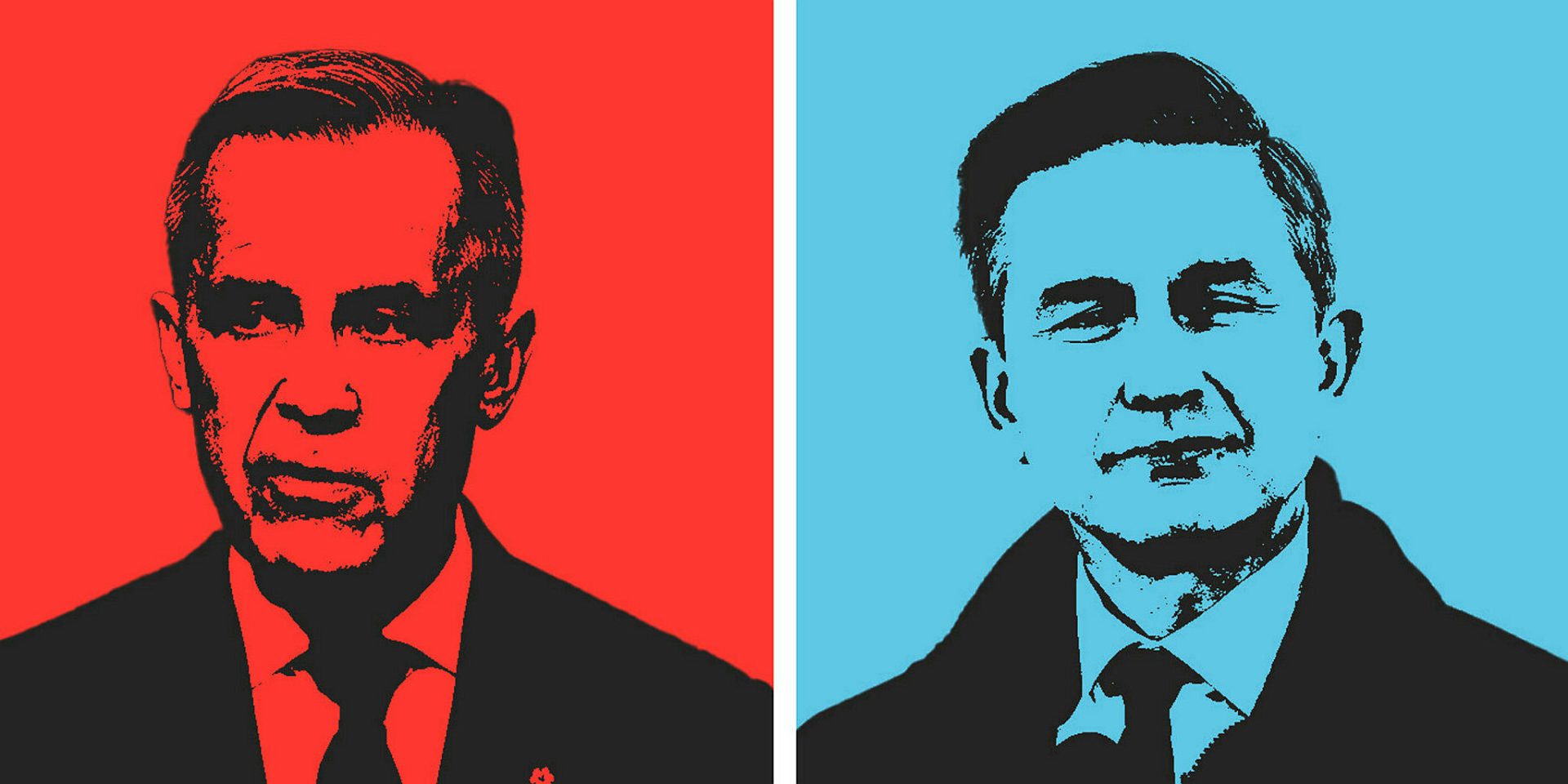 Prime Minister Mark Carney, left, and Conservative Leader Pierre Poilievre. The two parties are currently pursuing a different kind of communication strategy to reflect political circumstances, writes Gerry Nicholls. The Hill Times photographs by Andrew Meade and illustration by Joey Sabourin