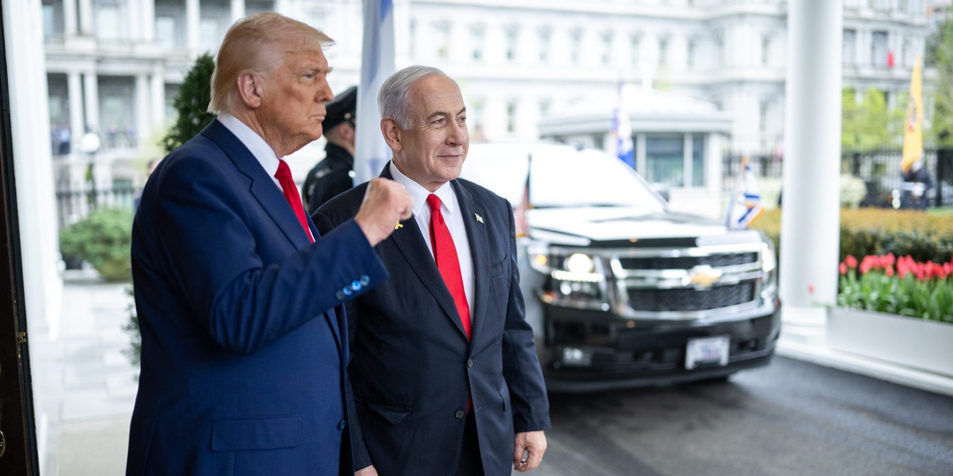 U.S. President Donald Trump, left, and Israeli Prime Minister Benjamin Netanyahu meet at The White House on April 7. Photograph courtesy of Flickr/The White House