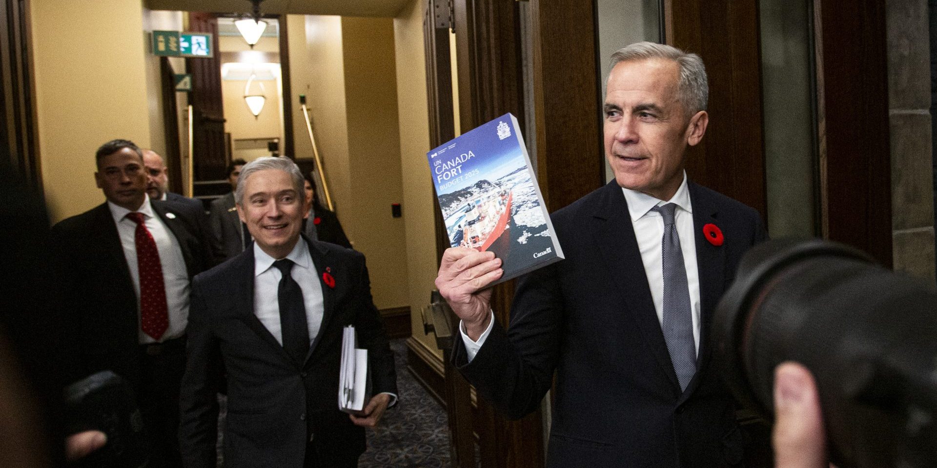 Finance Minister François-Philippe Champagne, left, and Prime Minister Mark Carney head into the House of Commons on Nov. 4 to present the 2025 budget, which includes the announcement that their government intends to go ahead with a climate competitiveness strategy. The Hill Times photograph by Sam Garcia
