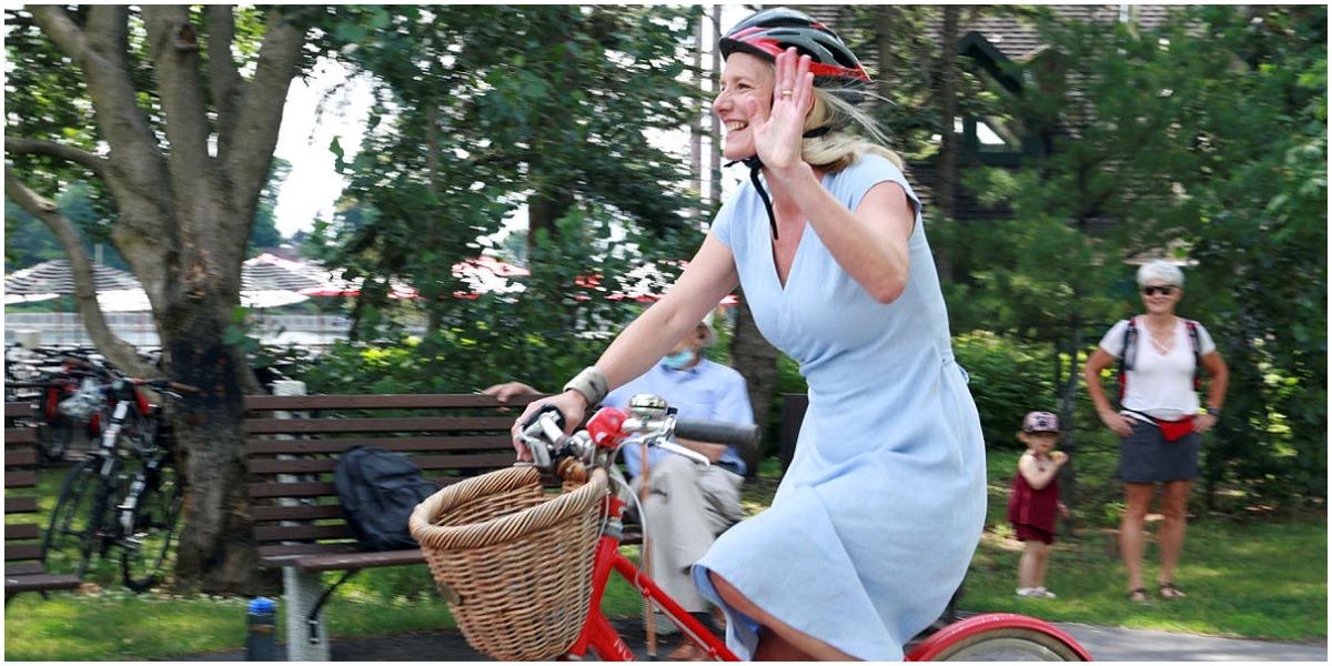 Infrastructure Minister Catherine McKenna cycled along Rideau Canal Western Pathway to meet reporters on June 28, where she announced she would not be running for re-election in Ottawa-Centre, Ont. Ms. McKenna was first elected in 2015, after which she soon became environment minister, a post she held until 2019 when she switched to the infrastructure file. The Hill Times photograph by Sam Garcia