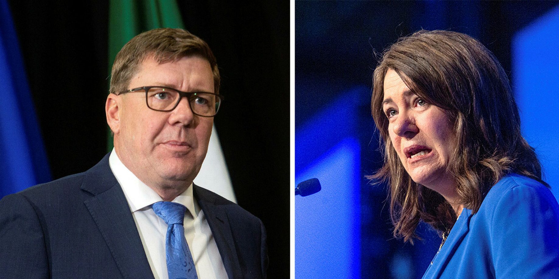 Saskatchewan Premier Scott Moe, left, has eliminated the province's industrial carbon pricing program. Meanwhile, Alberta Premier Danielle Smith’s government is reportedly considering changes to her province's own program. The Hill Times photographs by Andrew Meade