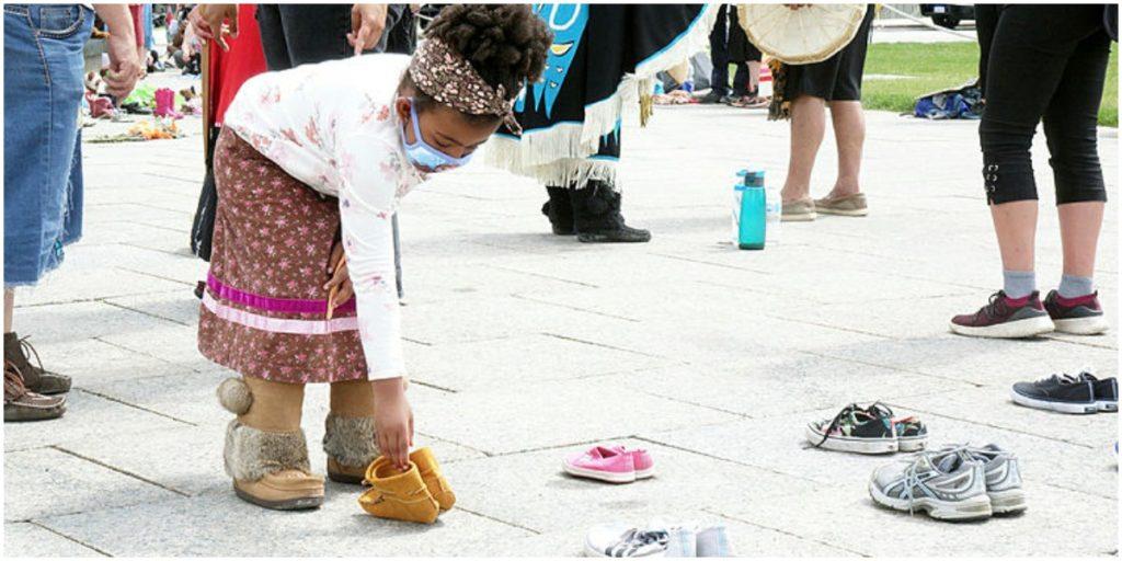A child places moccasins among dozens of shoes near Centennial Flame at a June 3, 2021, event to honour the 215 children whose remains were found on the grounds of the Kamloops Indian Residential School in B.C. The Hill Times photograph by Sam Garcia Dozens of shoes were placed near Centennial Flame on Parliament Hill […]