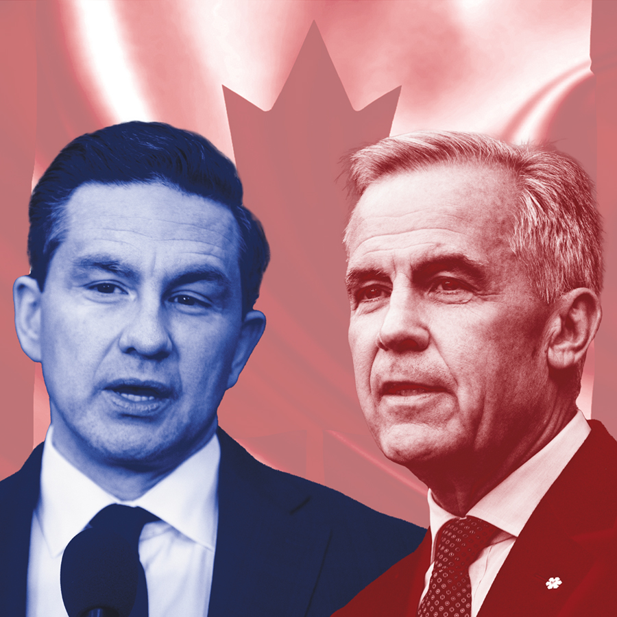 Prime Minister Mark Carney, right, is now leading Conservative Leader Pierre Poilievre among both the youngest and oldest cohorts of voters, and polling with more than 50 per cent of support among women voters. The Hill Times photographs by Andrew Meade and illustration by Neena Singhal