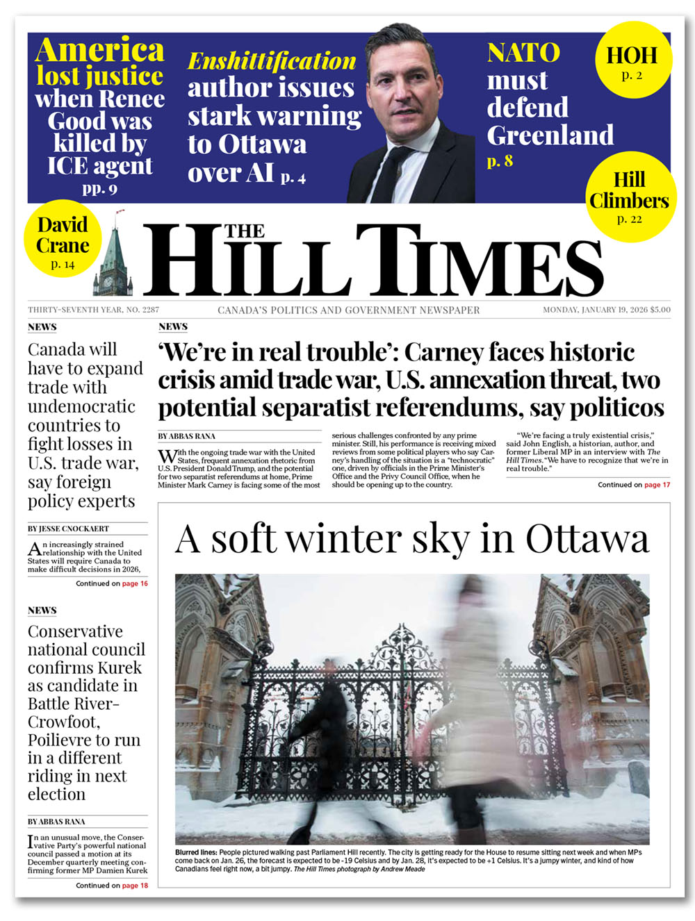 Prime Minister Mark Carney’s handling of the challenges coming out of the U.S. is ‘technocratic,’ and the prime minister should engage Canadians in sharing how he's handling Canada-U.S. relations, says former foreign affairs minister Lloyd Axworthy. The Hill Times photograph by Andrew Meade