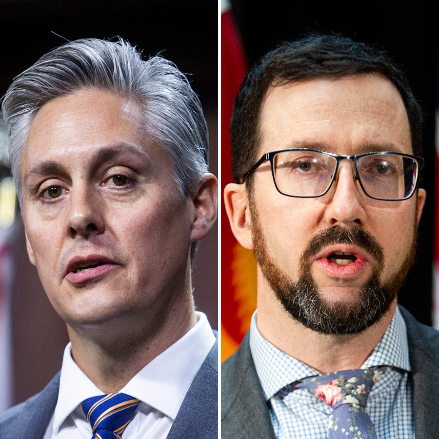 Senators Pierre Moreau, left, Lucie Moncion, Flordeliz Osler, and Brian Francis are the leaders of their respective groups. Osler says members of the Canadian Senators Group see the 'new' balance between moving quickly and analyzing legislation as a 'positive.' The Hill Times photographs by Andrew Meade and Sam Garcia