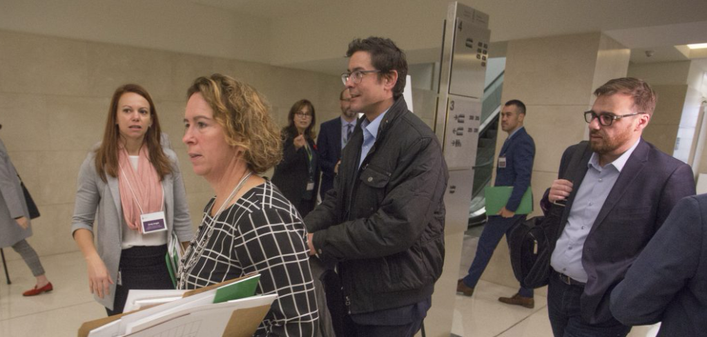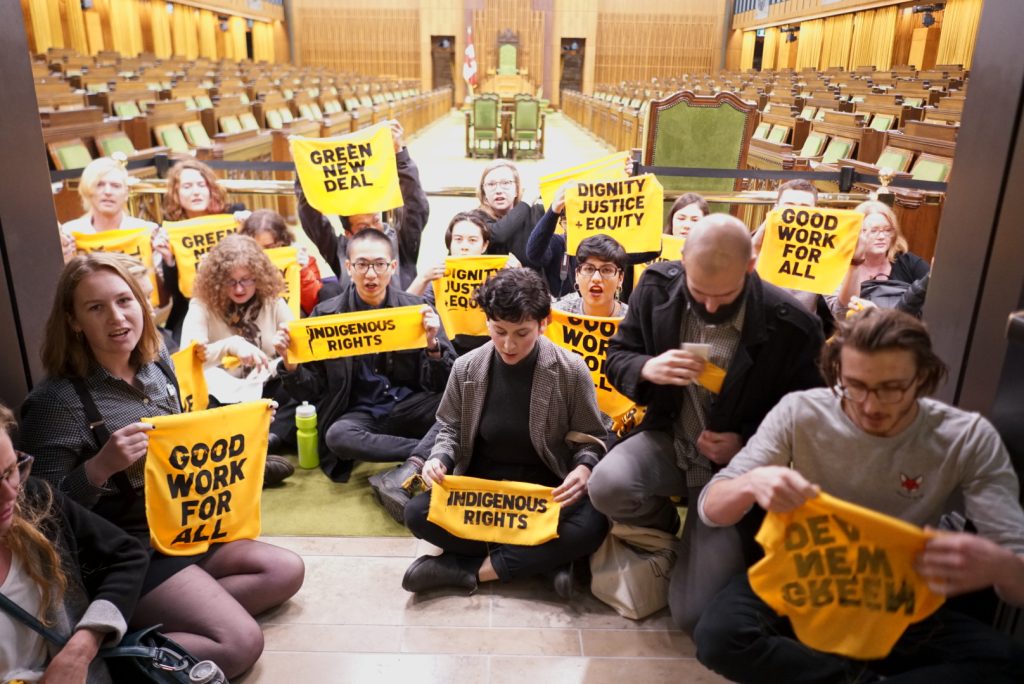 Climate activists stage a sit-in at West Block, calling on the incoming class of MPs to adopt Canada's version of a Green New Deal. Photograph courtesy of Our Time