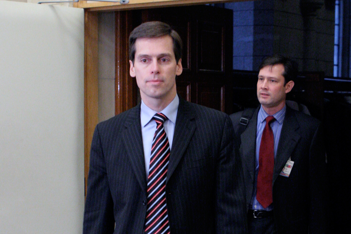 Former Conservative MP Russ Hiebert, leaving a committee meeting in this archive photo, introduced the union transparency bill, C-377, in the last Parliament. The Hill Times photograph by Jake Wright