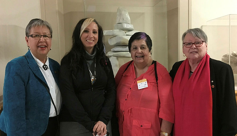 Indigenous rights advocates, from left, Sen. Lillian Dyck, Pamela Palmater, Sharon McIvor, and Sen. Sandra Lovelace Nicholas. On Jan. 14, the United Nations Human Rights Committee released a decision in favour of Ms. McIvor’s 2010 complaint about discrimination against First Nations women in the Indian Act. Photograph courtesy of Sen. Lillian Dyck