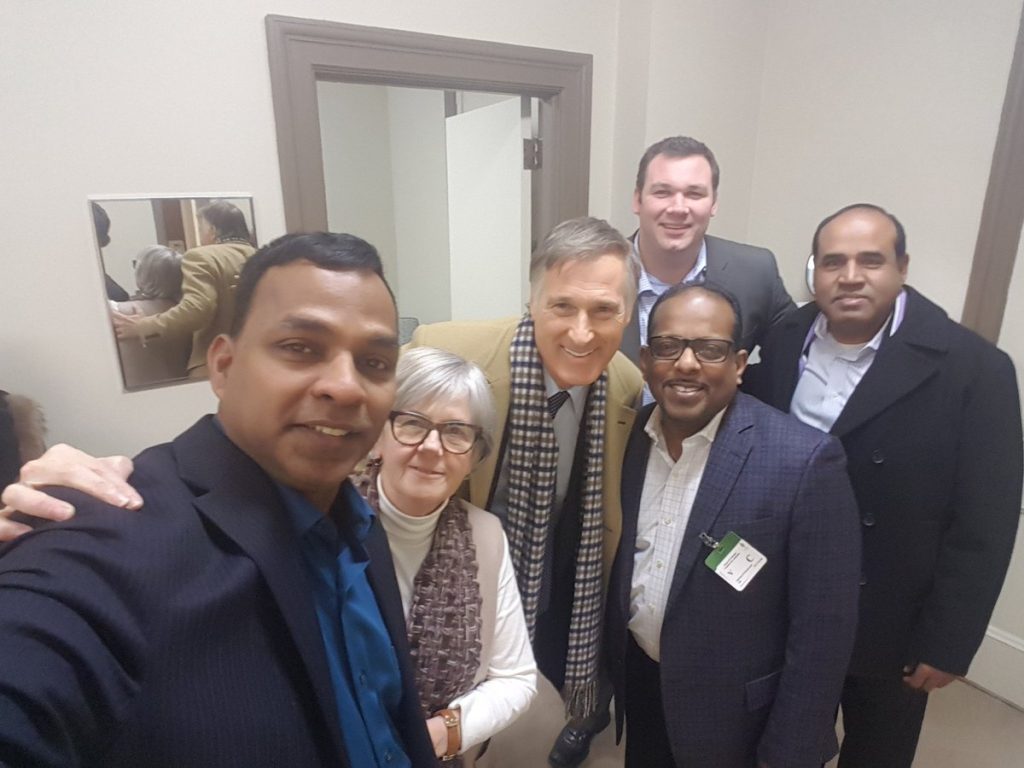 From left: Babu Nagalingam, an Ontario Tamil diaspora leader, senior adviser to the Ontario PCs, and close friend of its leader Patrick Brown; Renee Farrell; federal Conservative leadership contender Maxime Bernier; Tamil community leader Sri Vallipuranathar, a supporter of Mr. Brown and national organizational chair to Mr. Bernier; Conservative MP and supporter of Mr. Bernier Alex Nuttall; and Sab Thiyaga. Photograph courtesy of Babu Nagalingam