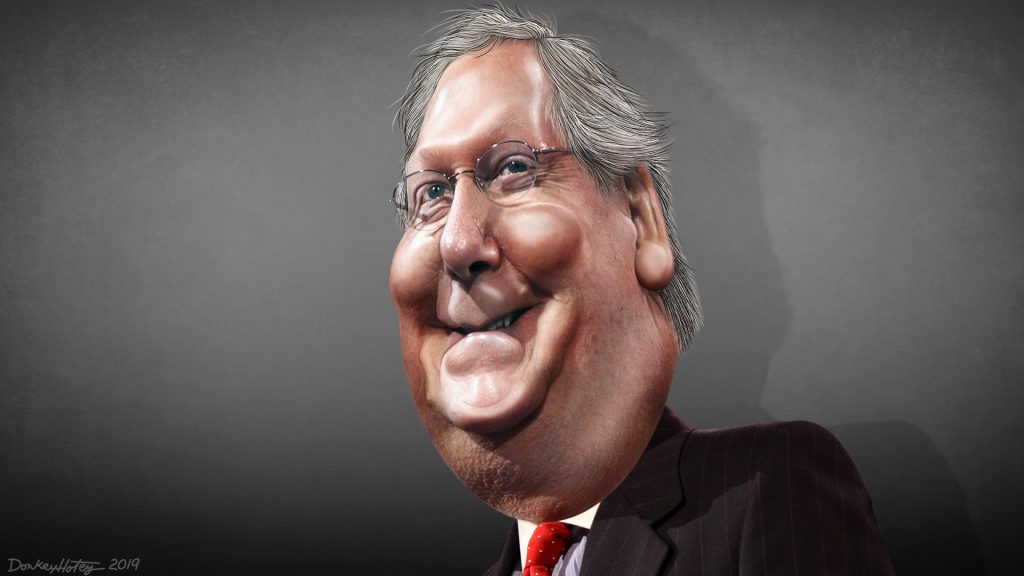 Senate Majority Leader Mitch McConnell explained that the disputed defence appropriations bill 'will cement our advantage on the seas, on land, in the air, in cyberspace and in space,' but you have to ask: an advantage that enables the United States to do what, asks Gwynne Dyer. Caricature courtesy of Commons Wikimedia