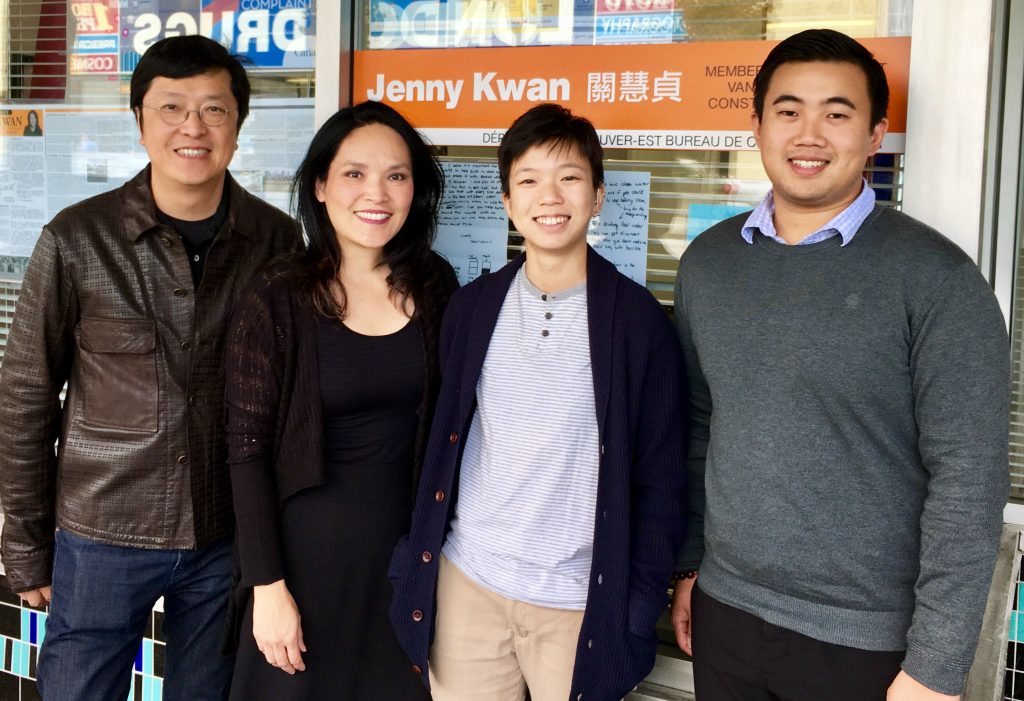 NDP MP Jenny Kwan's constituency team, from left to right: member's assistant Gabriel Yiu, Ms. Kwan, constituency assistant Dora Ng, and constituency assistant Calvin Kuah. Photograph courtesy of the Hastings North BIA