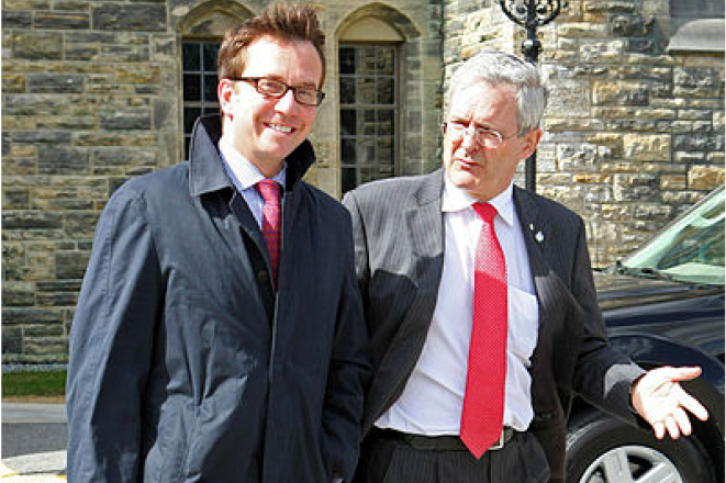 Longtime roommates and Conservative MPs Kevin Sorenson, left, and David Anderson, pictured in Mr. Sorenson's Hill office in the Justice Building. The Hill Times photograph by Laura Ryckewaert