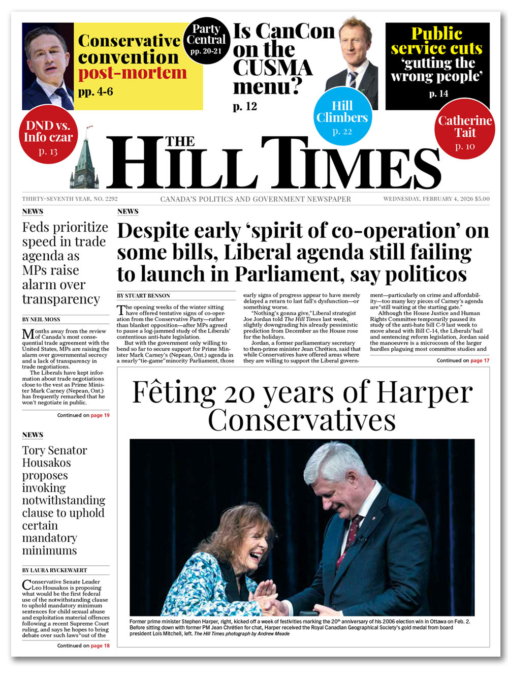 By entering your email address you consent to receive email from The Hill Times containing news, analysis, updates and offers. You may unsubscribe at any time. See our privacy policy