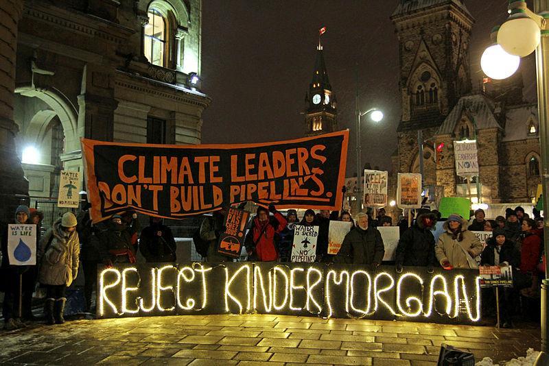 A group of protestors rally against the proposed Kinder Morgan pipeline in front of the Parliament Buildings and Prime Minister Justin Trudeau's office in Ottawa on November 21. The Hill Times photograph by Sam Garcia