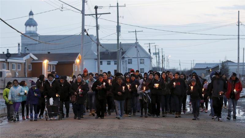 Youth marching for hope in Attawapiskat on April 24, 2016. Photograph courtesy of NDP MP Charlie Angus, Facebook.