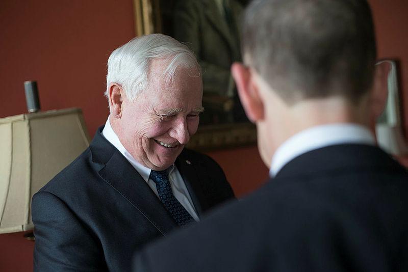 Governor General David Johnston, pictured here sharing a laugh with Power & Influence reporter Chris Guly at Rideau Hall, is welcoming Mexican President Enrique Peña Nieto to Canada today. Also, look for a sit-down interview feature with GG Johnston in the next edition of P&I magazine, hitting shelves on July 11. (P&I Photograph by of Jake Wright)