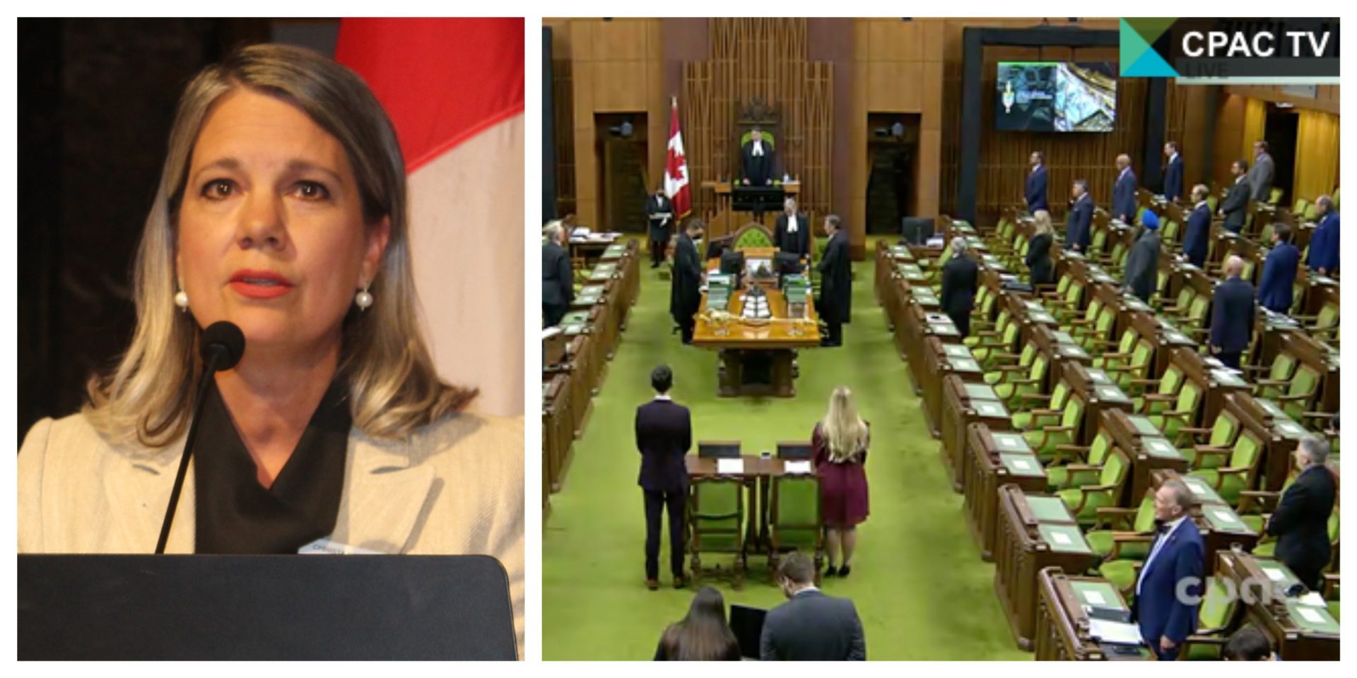 CPAC CEO Christa Dickenson, left, says the CRTC's move to delay its decision on their request for a funding boost could mean the cable channel, which broadcasts parliamentary activities including House of Commons business, could go dark. The Hill Times photograph by Stuart Benson and screenshot courtesy of CPAC