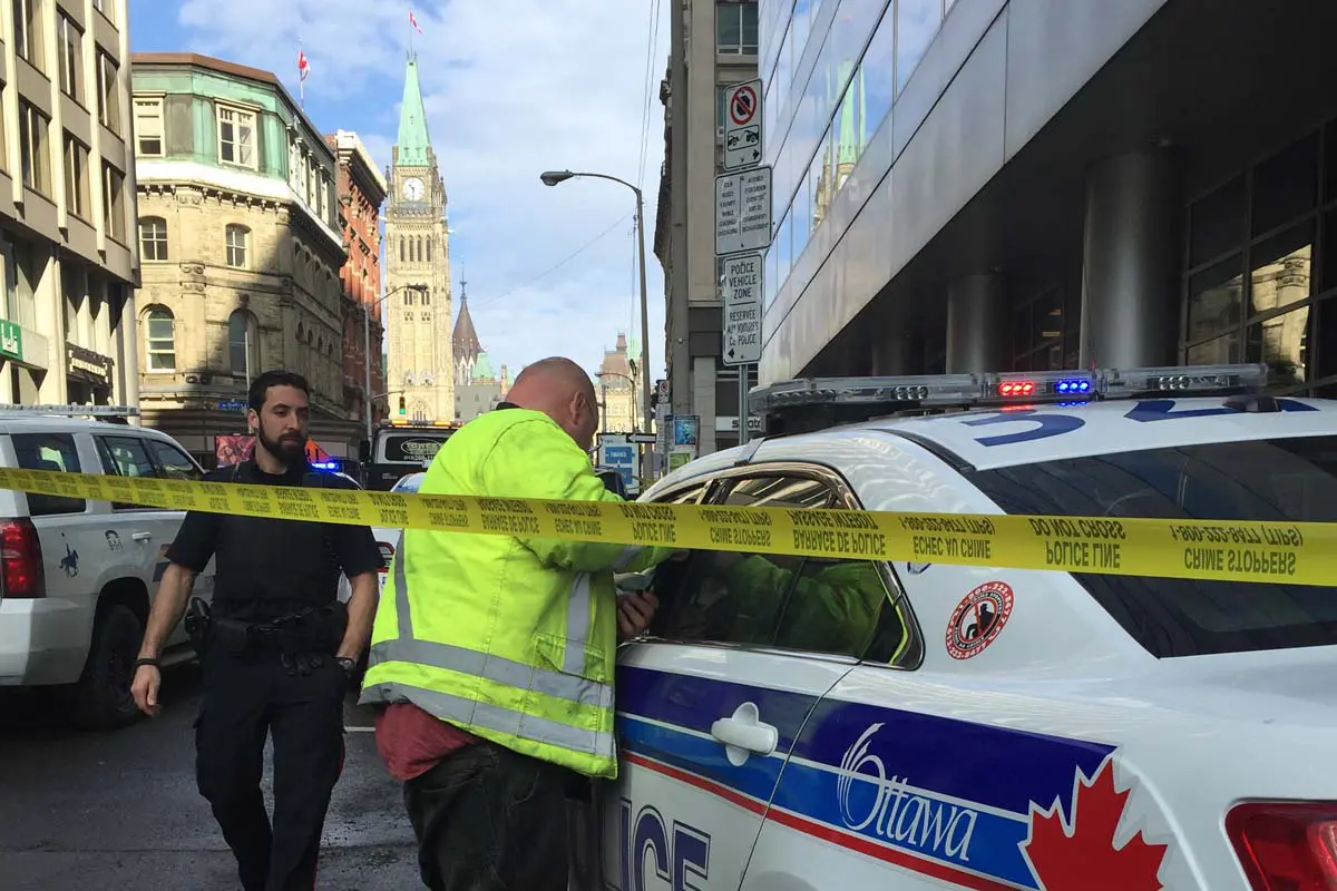 A portion of Metcalfe Street near Parliament Hill is closed off Thursday morning as police investigate what turned out to be a gun suicide by an RCMP officer. The Hill Times photograph by Rachel Aiello