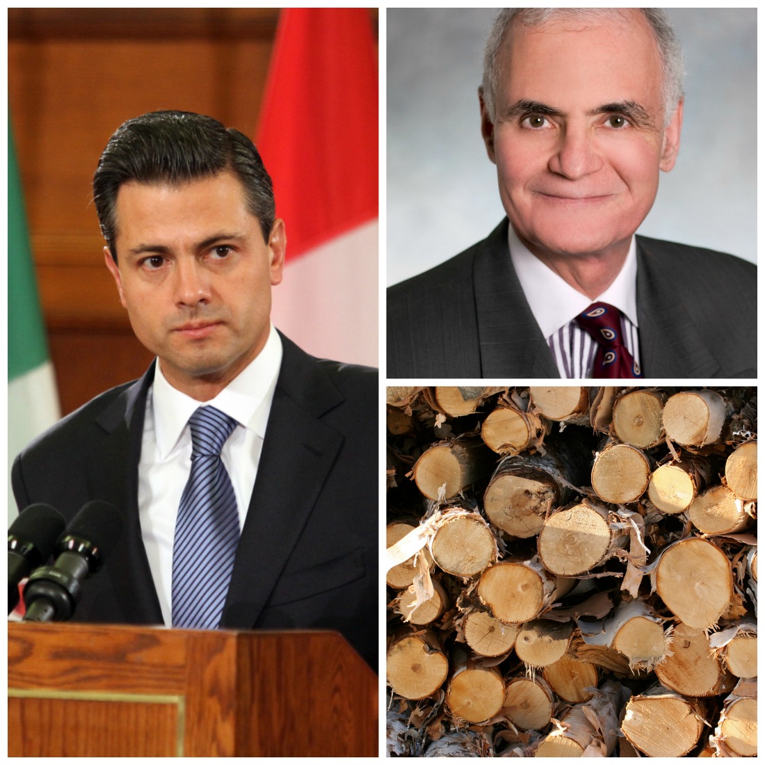 Canada's visa requirement for Mexicans travelling to Canada remains a point of contention between the two countries that will likely be raised at the summit by Mexican President Enrique Peña Nieto (pictured left). Despite the hype, Toronto-based trade lawyer Lawrence Herman (top right) said the impending end of U.S. President Barack Obama's tenure in the White House might make the other leaders 'reluctant' to reach firm commitments or agreements. A new lumber deal (bottom right) remains a lingering issue between the United States and Canada. Photos by Sam Garcia, Lawrence Herman, and The Hill Times