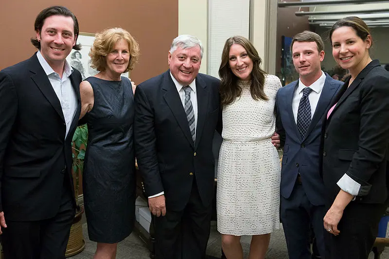 Mike Robinson, third from the left, celebrates Earnscliffe Strategy Group's 25th anniversary with family members in 2014. Also in the picture are, from the left, son Craig Robinson, wife ML Walsh, daughter Katie Robinson, son-in-law Sean Rockburn, and daughter-in-law Katherine Levitt. The Hill Times photograph by Jake Wright