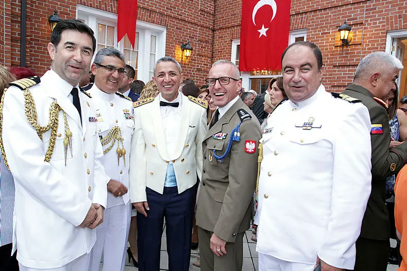 Chilean defence attaché Capt. Fernando Borcoski, left, with Peruvian assistant defence and naval attaché Capt. Marco Antonio Montero Gallegos, Turkish military attaché Col. Ersin Ozkan, Polish defence attaché Col. Cezary Kiszkowiak, and Col.-Maj. Walid Zaouali, defence attaché for Tunisia. The Hill Times photograph by Sam Garcia