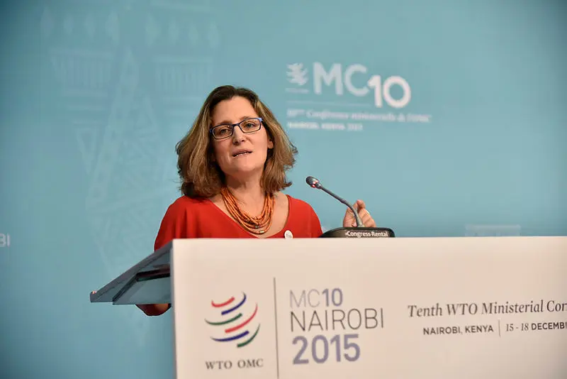 International Trade Minister Chrystia Freeland was recently called not grown-up by the opposition after the CETA trade deal ran into trouble last week. Photograph courtesy of WTO