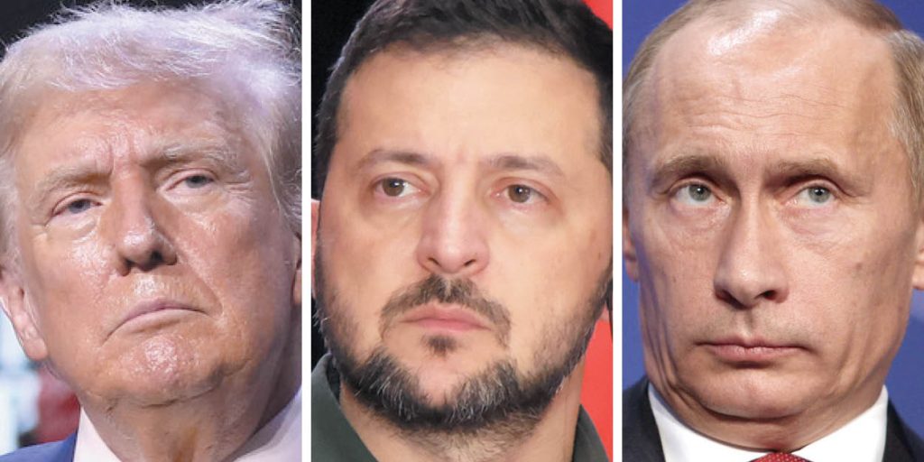 U.S. President Donald Trump, left, Ukrainian President Volodymyr Zelenskyy, and Russian President Vladimir Putin. Wars of attrition generally end when one side cannot continue because its soldiers mutiny or because its citizens at home refuse to support it any longer. We’re not there yet, writes Gwynne Dyer. The Hill Times photograph by Sam Garcia and courtesy of Flickr/Gage Skidmore/World Economic Forum