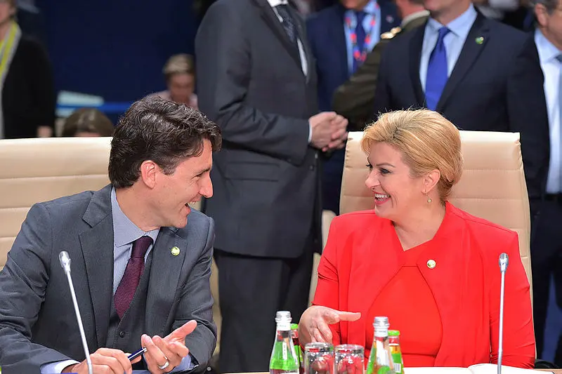 Prime Minister Justin Trudeau with Croatian President Kolinda Grabar-Kitarović at a NATO summit in July 2016. Photograph courtesy of NATO