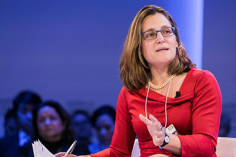 Foreign Minister Chrystia Freeland said Canada has been called to help form a new international order, in a speech made shortly after United States President Donald Trump said the U.S. would pull out of the Paris climate agreement. Photograph by Benedikt von Loebell, courtesy of the World Economic Forum