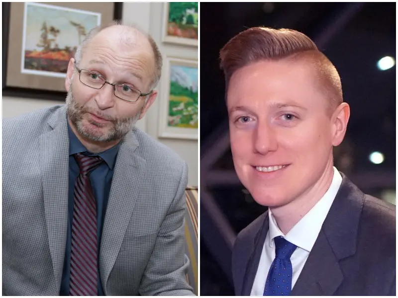 Liberal MP David Lametti, left, is a former law professor specializing in intellectual property law. Emrys Graefe, right, is a former Conservative staffer who is leading Conservative Futures, a libertarian advocacy group that is using past statements or writings from Mr. Lametti and others to draw support for his organization from Canadian libertarians. The Hill Times photograph by Sam Garcia; photograph courtesy of Emrys Graefe