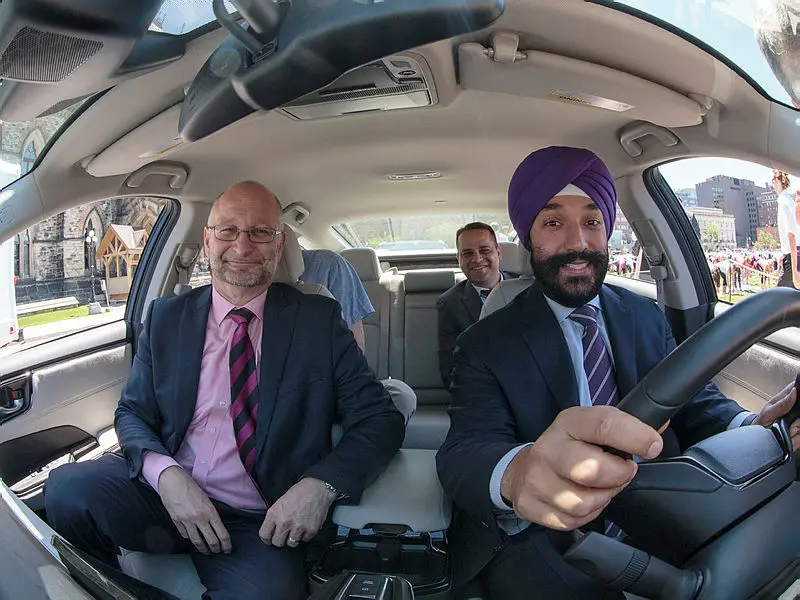 Innovation Minister Navdeep Bains, right, pictured June 7, 2017, on the Hill testing out a hydrogen fuel cell car, along with Liberal MP David Lametti, is the federal minister responsible for the Copyright Act. The Hill Times photograph by Jake Wright