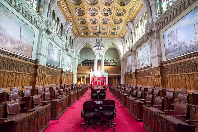 Senators' desks, the Senate throne, and the rest of the furniture and art in the Senate Chamber and foyer will have to be carefully moved down the road to the Government Conference Centre next year when renovations on Centre Block begin. The Hill Times photograph by Jake Wright