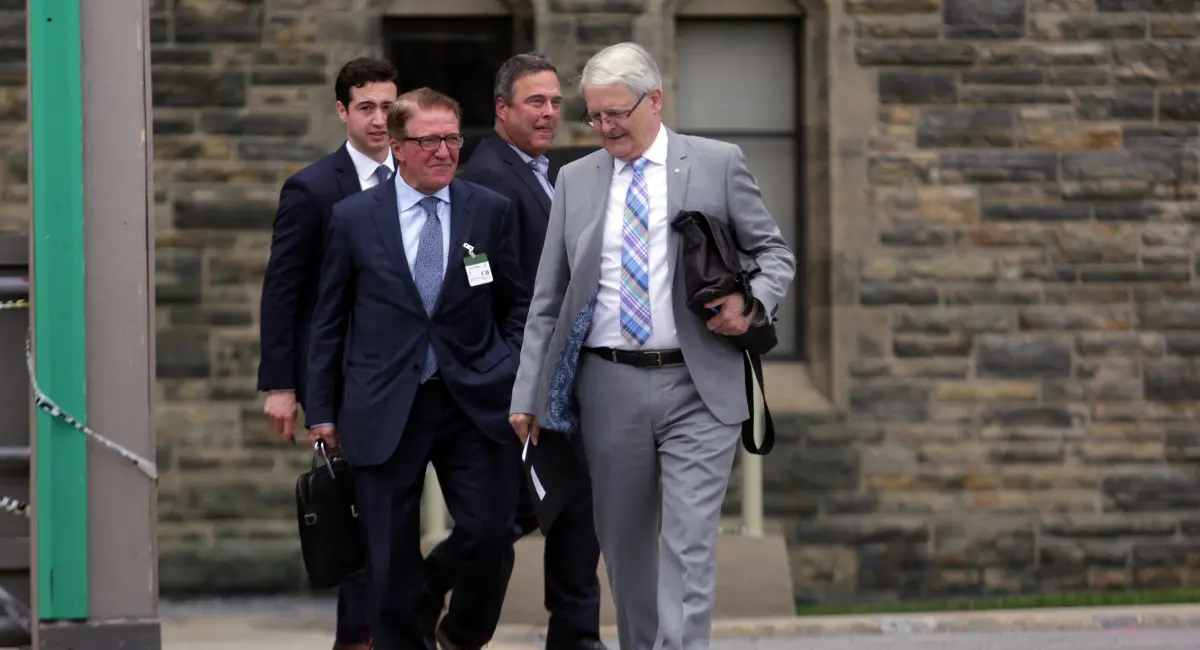 Transport Minister Marc Garneau, right, pictured on the Hill earlier this spring with Porter Airlines CEO Robert Deluce, is set to have a new chief of staff starting June 22, his director of communications Marc Roy. The Hill Times photograph by Andrew Meade