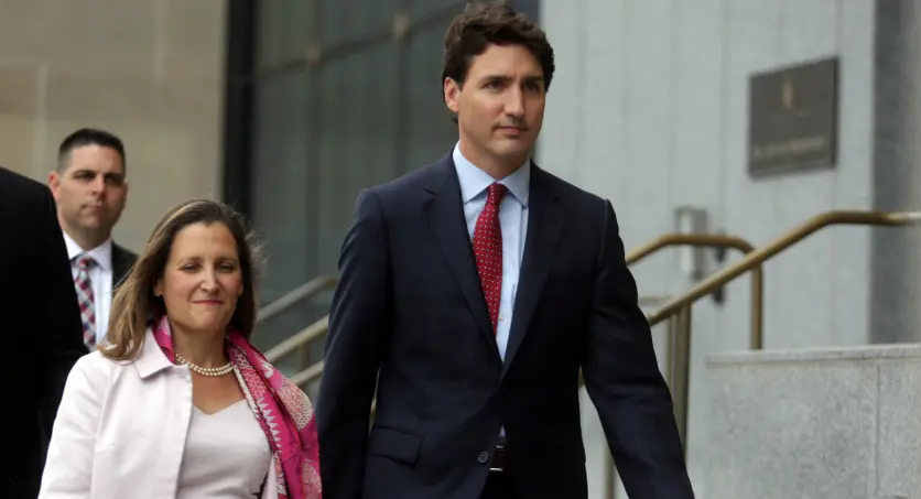 Prime Minister Justin Trudeau, pictured on May 31 with Foreign Affairs Minister Chrystia Freeland, walking to the National Press Theatre in Ottawa. The Hill Times photograph by Andrew Meade