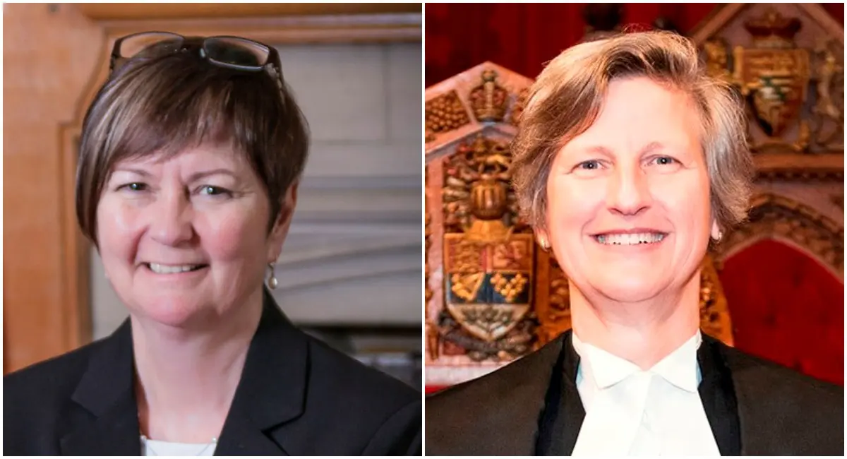 Senate law clerk Jacqueline Kuehl, left, will leave her post on July 6. Principal clerk Heather Lank, right, left the Senate last month to become the new Parliamentary Librarian. Photographs courtesy of the Senate of Canada and Heather Lank