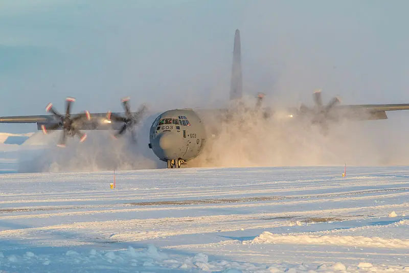 A CC-130 Hercules aircraft lands at CFB Alert, Nunavut after a fuel run during Operation Boxtop on Oct. 4, 2016. Almost all recent Canadian Armed Forces operations, like Operation Boxtop are defensively focused on Canada’s archipelago, writes Julian Schofield. Canadian Armed Forces photo courtesy of Cpl. Ryan Moulton