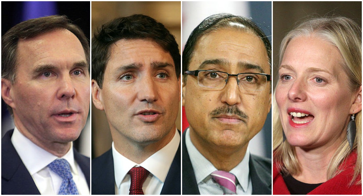 In November the most lobbied in cabinet were, from left, Finance Minister Bill Morneau, Prime Minister Justin Trudeau, Natural Resources Minister Amarjeet Sohi, and Environment Minister Catherine McKenna. The Hill Times photographs by Andrew Meade