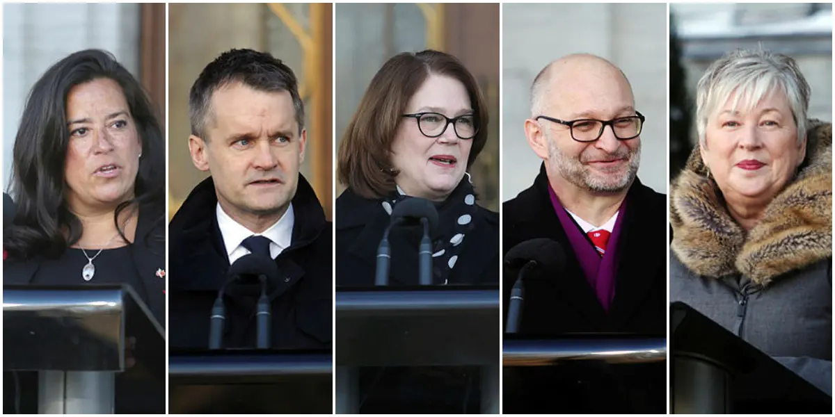 The Jan. 14 cabinet shuffle saw Jody Wilson-Raybould, left, named minister of Veterans Affairs, Seamus O'Regan took over as minister of Indigenous Services, Jane Philpott was made Treasury Board president and digital government minister, David Lametti is now Justice minister, and Bernadette Jordan was appointed to the new post of minister of Rural Economic Development. The Hill Times photographs by Andrew Meade