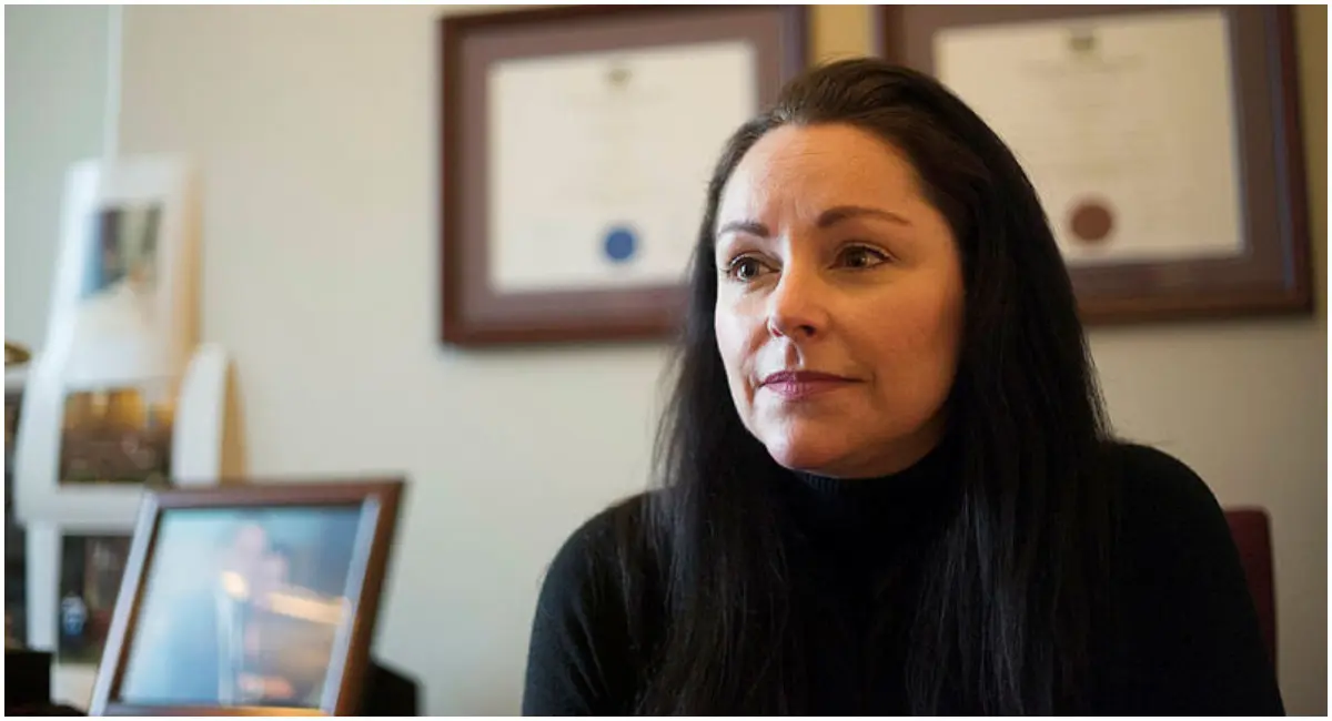 Claudine Courtois sits in her office on Parliament Hill with a photo of her late husband, Conservative MP Gord Brown, framed on her desk behind her. Mr. Brown died of a heart attack in his office on May 2, 2018. He was 57. The Hill Times photograph by Andrew Meade
