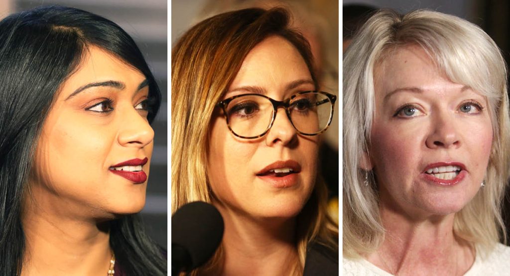 Conservative House Leader Candice Bergen, left, pictured speaking with Government House Leader Bardish Chagger during a meeting of the House Board of Internal Economy last year. The two House leaders each say the other is not providing them with enough information about their caucus' plan for time in the House. The Hill Times photograph by Andrew Meade