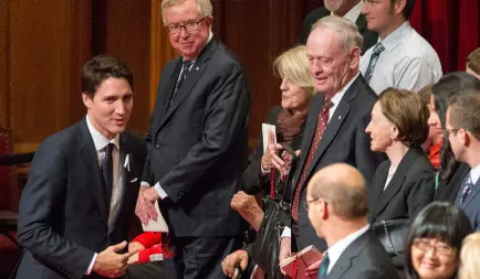 Prime Minister Justin Trudeau, left, pictured at the first and, so far, only Throne speech during his time as prime minister, in the Senate in 2015. He was joined by former prime minister Joe Clark, top, and Jean Chrétien, right. The Hill Times file photograph