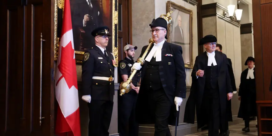 Patrick McDonell, pictured carrying the mace and leading the House Speaker's parade in his role as acting sergeant-at-arms, permanently took over the post on July 1, more than four years after it was vacated in January 2015. The Hill Times photograph by Andrew Meade