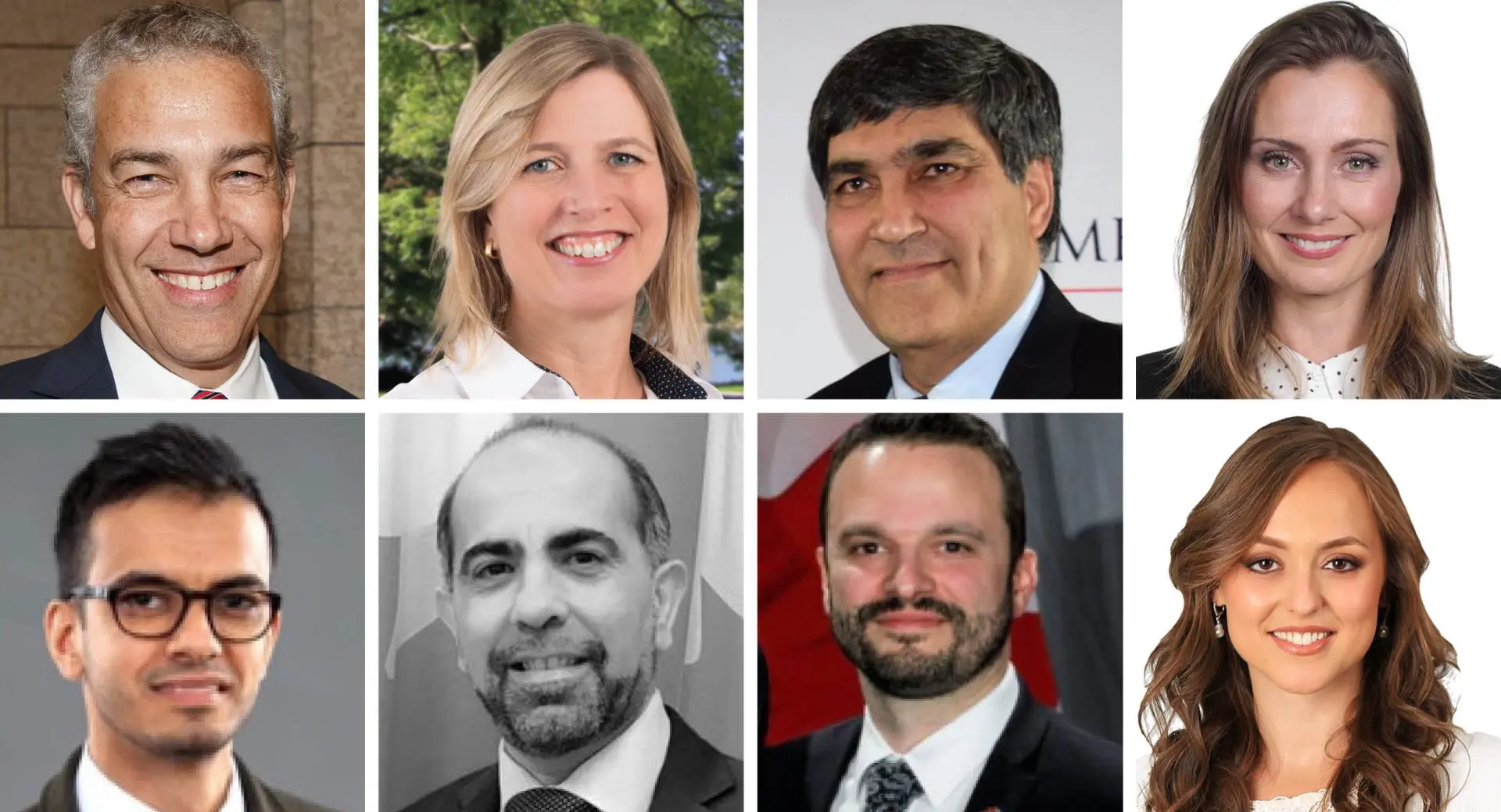 Liberal MP Frank Baylis, top left, announced in June he won't seek re-election. At least seven candidates are seeking re-election, including, clockwise, Kim Manning, Subhash Khanna, Justine McIntyre, Sophie Mohsen, Phil Ricard, Samer Majzoub, and Sameer Zuberi. The Hill Times file photograph, and courtesy of nomination candidates websites, Facebook, LinkedIn, and Twitter
