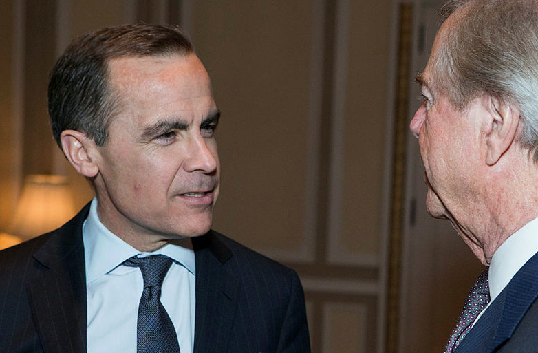 Bank of England Governor Mark Carney, pictured with Don Newman in 2013 during his time as the governor of the Bank of Canada. Mr. Carney proposed introducing a global digital currency for international transactions during a meeting of central bankers in Jackson Hole, Wyoming last week. The Hill Times file photograph
