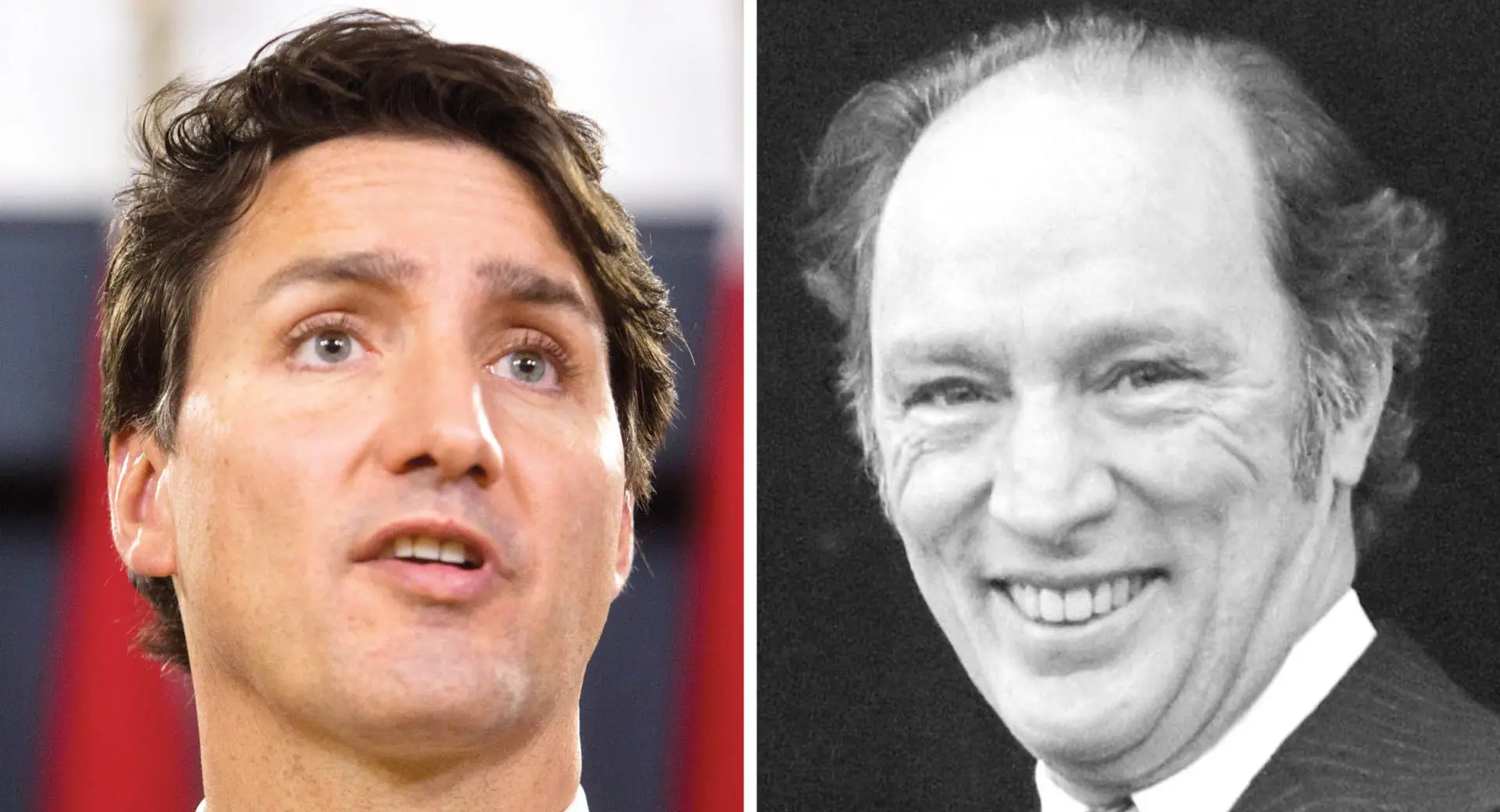 Prime Minister Justin Trudeau, left, former prime minister Pierre Elliott Trudeau, right. Pollster Nik Nanos says the younger Trudeau's first mandate was 'too heavily focused' on him as the prime minister, and that he needs to be seen as the leader of a strong cabinet in this new government. The Hill Times photograph by Andrew Meade, photograph courtesy of Wikipedia