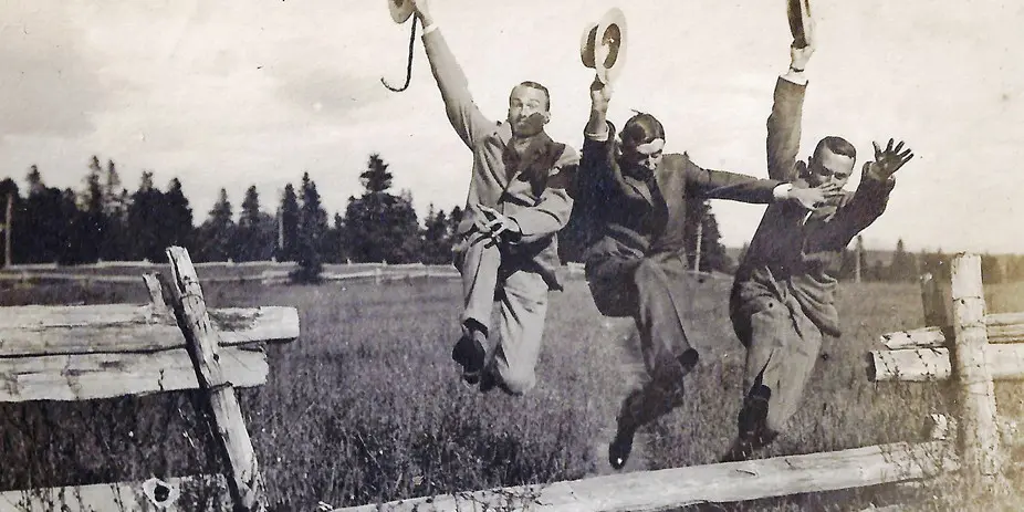 Garnet Wolseley LeMesurier, right, pictured jumping a fence in Kamouraska, Que., with his brother Percy, left, and friend Rex Meredith, centre, before he shipped off to war in 1914. Photograph courtesy of Andrew Caddell