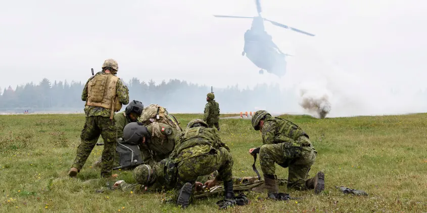 Members of the 3rd Battalion, Royal 22e Régiment are pictured conducting a medical evacuation exercise at CFB Valcartier on Sept. 25, 2019. Military personnel passionately represent and protect our country. They deserve the best possible care our health-care system can offer, while in active duty or after they’ve completed their service, writes Gerald Olin. Department of National Defence photograph by Private Marc-André Leclerc
