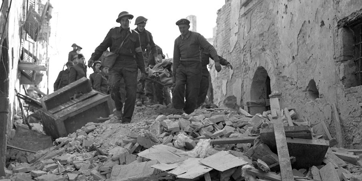 A Canadian solider is pictured being rescued in Ortona, Italy on Dec. 30, 1943. Photograph cpurtesy of Library and Archives Canada