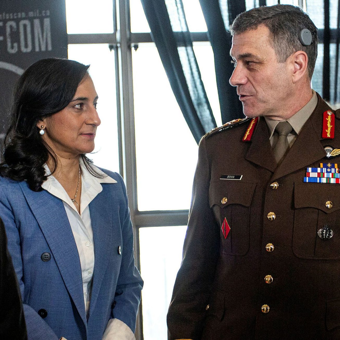Maj.-Gen. Jennie Carignan, left, took command of the NATO mission in Iraq from Maj.-Gen. Dany Fortin, right, on Nov. 26. Canadian Armed Forces photograph by Cpl. Ryan Moulton